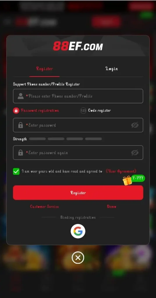 Creating an account on the 88EF Game is simple and quick. Follow these steps: