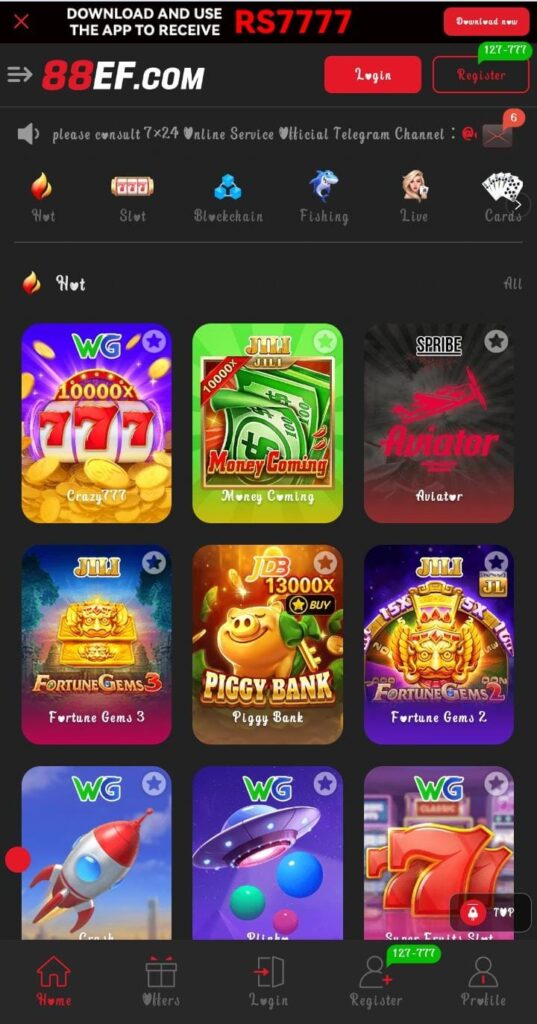 One of the strongest points of the 88EF APK is its clean and simple interface. All options such as games, wallet, deposit, and withdrawal are clearly visible, making navigation easy even for first-time users.
