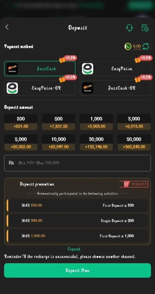 BV999 APK supports multiple deposit methods, making it convenient for users to add funds. The minimum deposit amount is usually kept low, making the platform accessible to beginners.