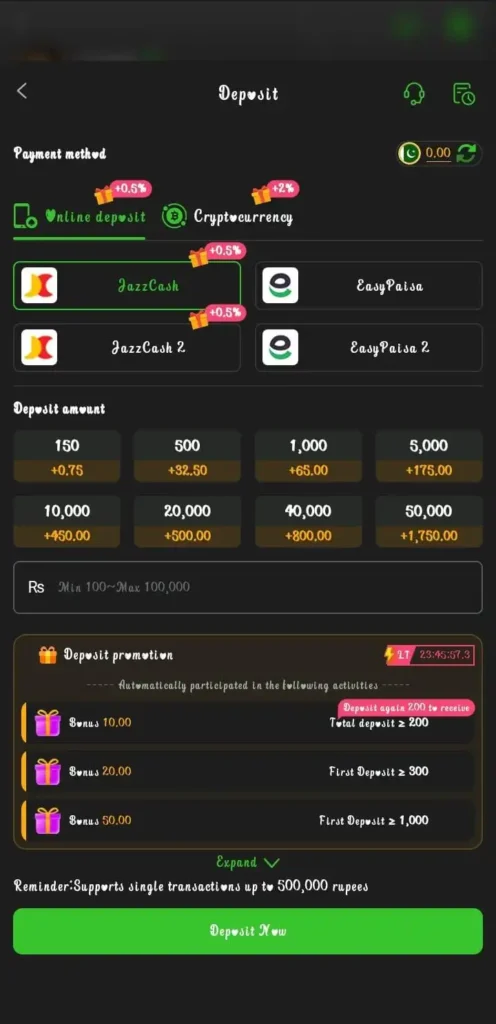 Before accessing certain activities, players may deposit funds using supported payment channels (covered later in detail).