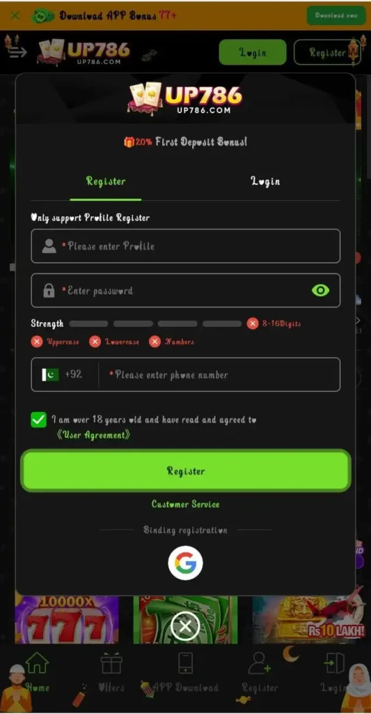 Registering on UP786 APK is quick and straightforward. Users can create an account within minutes by providing basic details. This allows instant access to the platform without unnecessary delays.